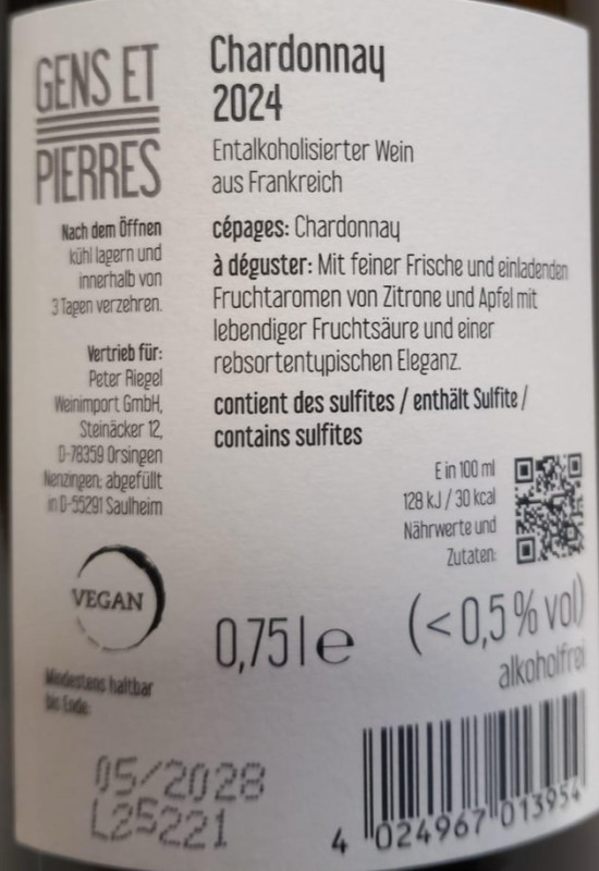 nicht zertifizierbar - aus Bio-Trauben - siehe Beschreibung